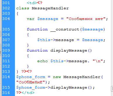 2. Вставить выражение class в те места, где необходимо использовать соответствующий объект. Класс можно разместить в самом сценарии. Однако чаще всего конструкцию class размещают в отдельном файле, который включается в сценарий с помощью директивы include